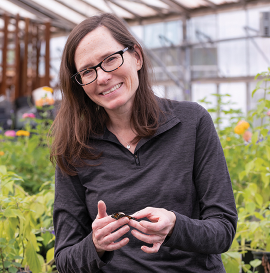 Kristen Baum ’94 knows just how special the monarch butterfly is, having dedicated her career to researching the insect and its migration patterns, and supporting pollinator conservation efforts. In November 2023, Baum was hired as the new director of Monarch Watch, an international program based at the University of Kansas (KU) that focuses on the conservation and study of monarch butterflies. The program started with a small monarch tagging project in 1992 and expanded from concentrating on research and outreach into international conservation efforts.